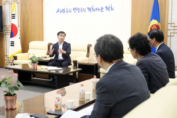 [금요저널] 염종현 경기도의회 의장은 19일 한국예술문화단체총연합회 경기도연합회 김용수 회장을 만나 경기도 문화예술계 지원방안을 논의했다.