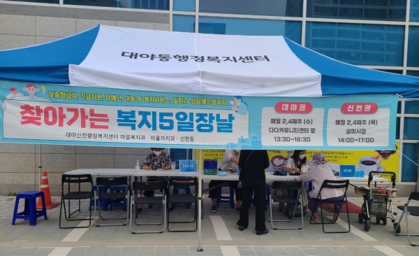 [금요저널] 대야·신천 행정복지센터는 무더웠던 하절기 휴식기를 마치고 지난 14일 대야동 다다커뮤니티센터에서 ‘찾아가는 복지 5일장‘을 재개해 주민들과 희망을 나눴다.