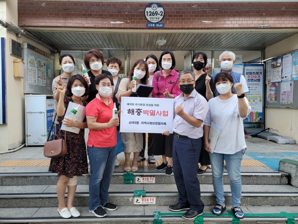 [금요저널] 부평구 산곡3동 지역사회보장협의체는 지난 19일 지역 내 주거환경이 열악한 주거취약가구와 소상공업체 72곳을 대상으로 해충박멸 사업을 진행했다.