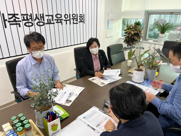 [금요저널] 경기도의회 여성가족평생교육위원회 김재균 위원장과 정윤경 의원은 19일 도의회 여성가족평생교육위원회 위원실에서 경기도 최초 도립 도서관인 ‘경기도서관’ 건립에 대해 경기도 도서관정책과의 보고를 받고 도내 모든 도서관에 대한 컨트롤타워 기능을 강화할 수 있는 방안에 대해 함께 논의했다.