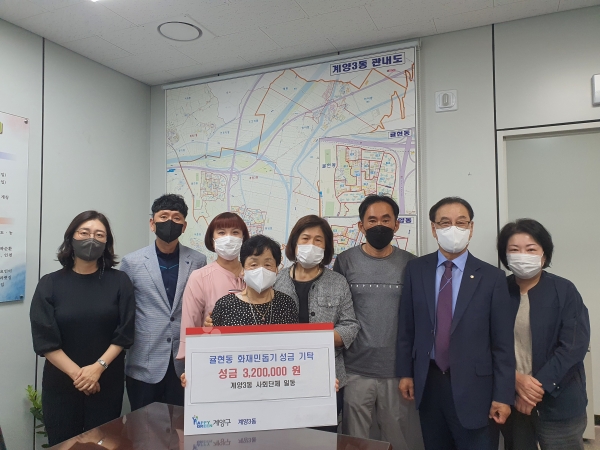 이번 성금은 지난달 28일 계양구 귤현동에서 일어난 화재로 발생한 이재민을 위로하고자 계양3동 주민자치회, 통장자율회, 보장협의체, 새마을지도자협의회, 새마을부녀회, 자율방범대 등 6개 단체에서 마음을 모아 마련했다.