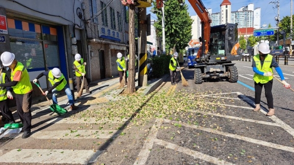 인천 중구, 가로수 은행 열매 수확 작업 실시