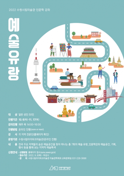 [금요저널] 수원시립미술관은 예술과 여행을 접목해 삶의 일상화, 힐링을 키워드로 한 온라인 인문학 강좌 ‘예술 유랑’을 10월 6일부터 운영하며 참여자를 모집한다.