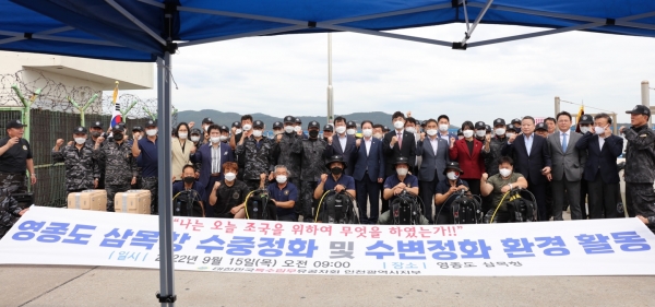 [금요저널] 대한민국특수임무유공자회 인천지부는 중구지회, 회원 100여명과 함께 지난 15일 운서동 삼목항에서 수중·수변 환경정화활동을 펼쳤다.
