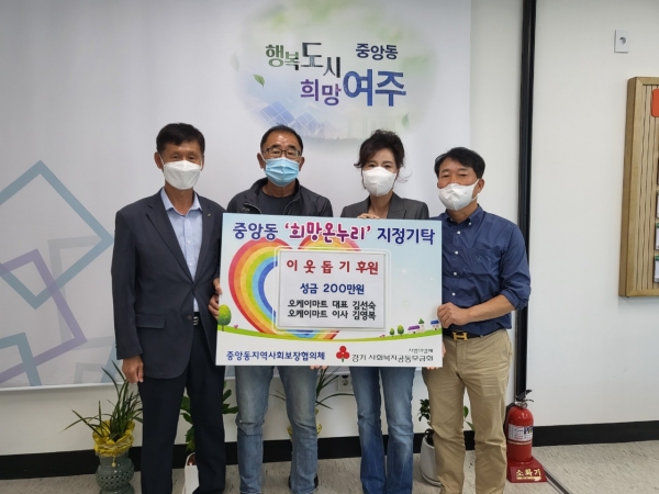 [금요저널] 여주시 중앙동 소재의 오케이마트는 9월 21일 취약계층을 위해 사용해달라며 이웃돕기 성금 200만원을 중앙동행정복지센터에 전달했다.