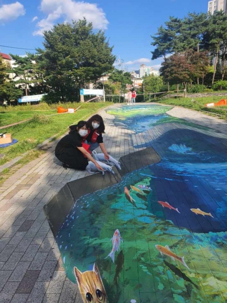 [금요저널] 광명시 소하2동 주민자치회는 영당말 근린공원 주 산책로 바닥에 트릭아트 포토존을 조성했다.
