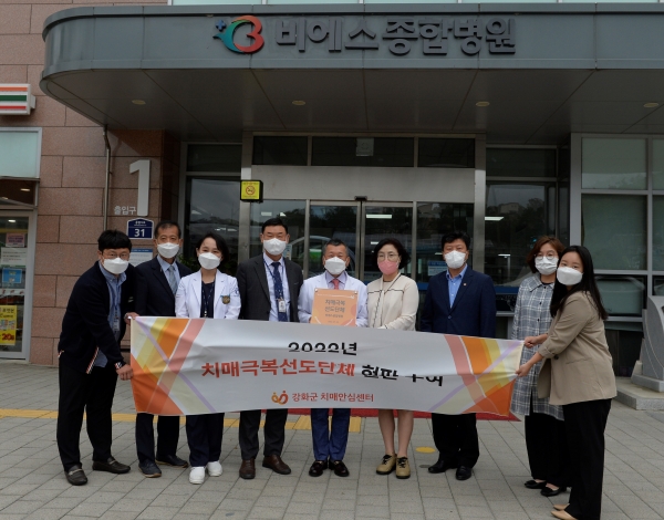 [금요저널] 강화군은 26일 치매극복 주간을 맞아 비에스 종합병원과 강화군 노인문화센터를 치매극복선도단체로 지정하고 현판 수여식을 진행했다.