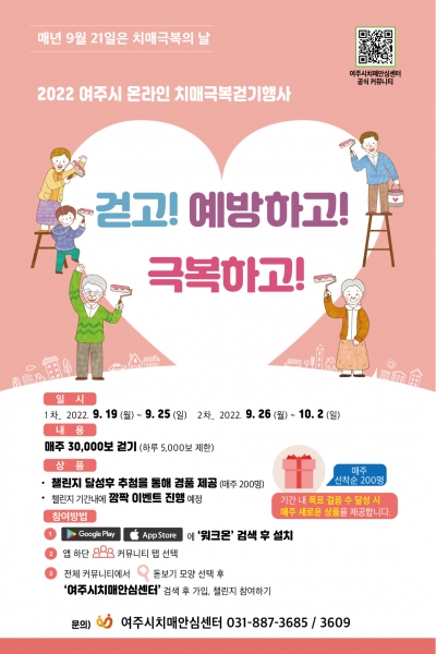 [금요저널] 여주시보건소 치매안심센터는 지난 21일 치매 극복의 날을 맞아, 지난 19일부터 10월 2일까지 2주간 온라인 치매 극복 걷기 행사를 실시하고 있다.