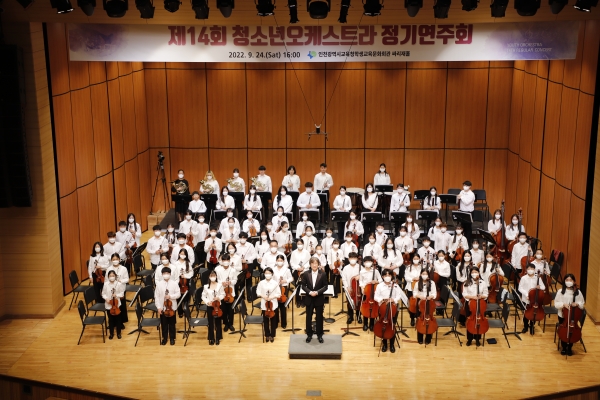 제14회 청소년오케스트라 정기연주회는 58명의 인천 초중고 학생이 참여했으며 베토벤 교향곡 2번 전악장과 3곡의 협주곡으로 풍성한 무대를 선보였다.