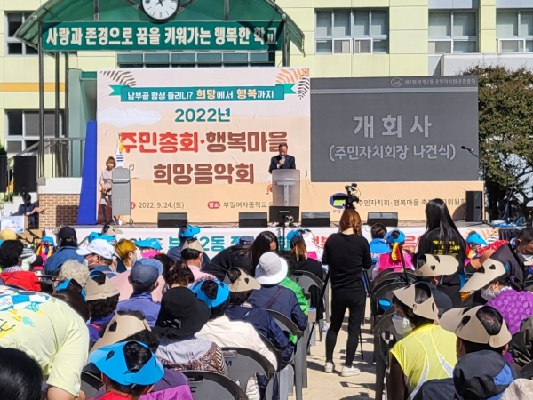 [금요저널] 부평구 부평2동 주민자치회와 행복마을 축제위원회는 지난 24일 부일여자중학교 운동장에서 주민 500여명이 참석한 가운데 주민총회와 행복마을 희망음악회를 진행했다.