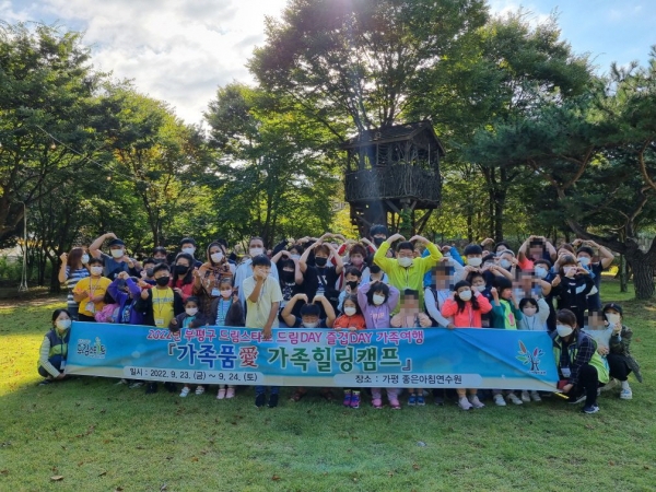 ‘가족품愛 가족힐링캠프’라는 주제로 진행한 가족여행은 드림스타트 가정 16곳을 대상으로 가족 간 소통 및 정서교감 활동을 통해 조화로운 가족 분위기 형성 시간을 보냈다.