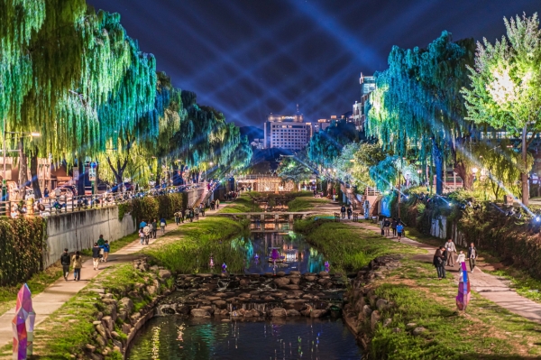 화홍문과 남수문, 그리고 두 수문 사이를 유유히 흐르는 수원천 일대가 밤마다 화려한 빛깔의 옷을 수차례 갈아입는다.