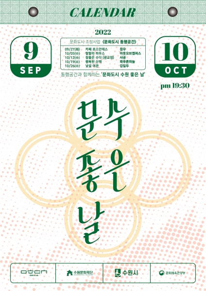 [금요저널] 수원문화재단 문화도시센터는 일상문화공간인‘동행공간’에서 9월 27일부터 10월 26일까지 매주 ‘문수 좋은 날’ 공연 프로그램을 추진한다.