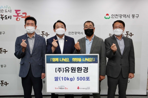 관내 기업인 유원환경은 건설·사업장 폐기물 처리 전문업체로 평소 동구의 어려운 이웃들을 돌아보며 크고 작은 나눔을 실천해오고 있으며 이날은 관내 저소득 세대를 위해 쌀 500포를 기부했다.