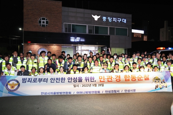 [금요저널] 안성시 자율방범연합회와 어머니자율방범대에서는 지난 28일 오후 8시부터 안성시 주요 지역 일대에서 주민들의 안전을 위한 야간 합동 방범 순찰을 실시했다.