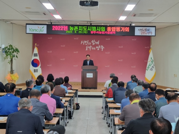 [금요저널] 양주시는 29일 농업기술센터 대회의실에서 시범사업농가, 농업인학습단체, 관계자 등 90여명이 참석한 가운데 2022년 농촌지도시범사업 종합평가회를 개최했다.
