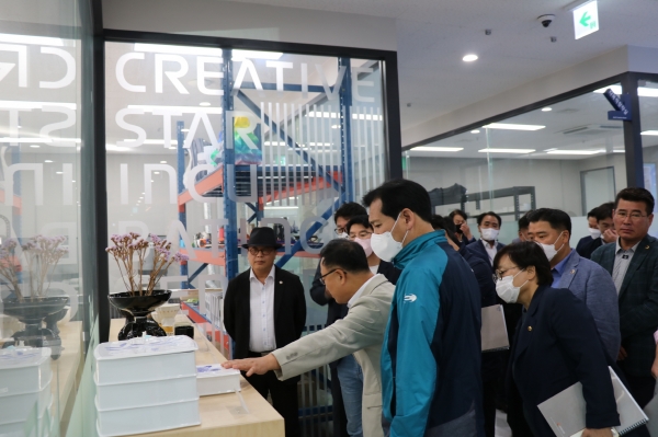 다음 방문지인 경기관광공사에서 운영하는 DMZ생태관광지원센터와 임진각 평화누리공원에서는 간략한 현황 보고를 청취하고 주한 미군 반환부지에 위치한 캠프그리브스 내 갤러리 및 안보체험시설 현황을 살펴봤다.