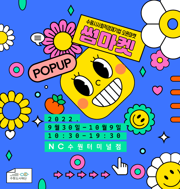 [금요저널] 수원시가 9월 30일부터 10월 9일까지 권선구 NC백화점 수원터미널점 앞 광장에서 ‘2022년 제2차 수원시 사회적경제 오픈마켓 썸’을 운영한다.
