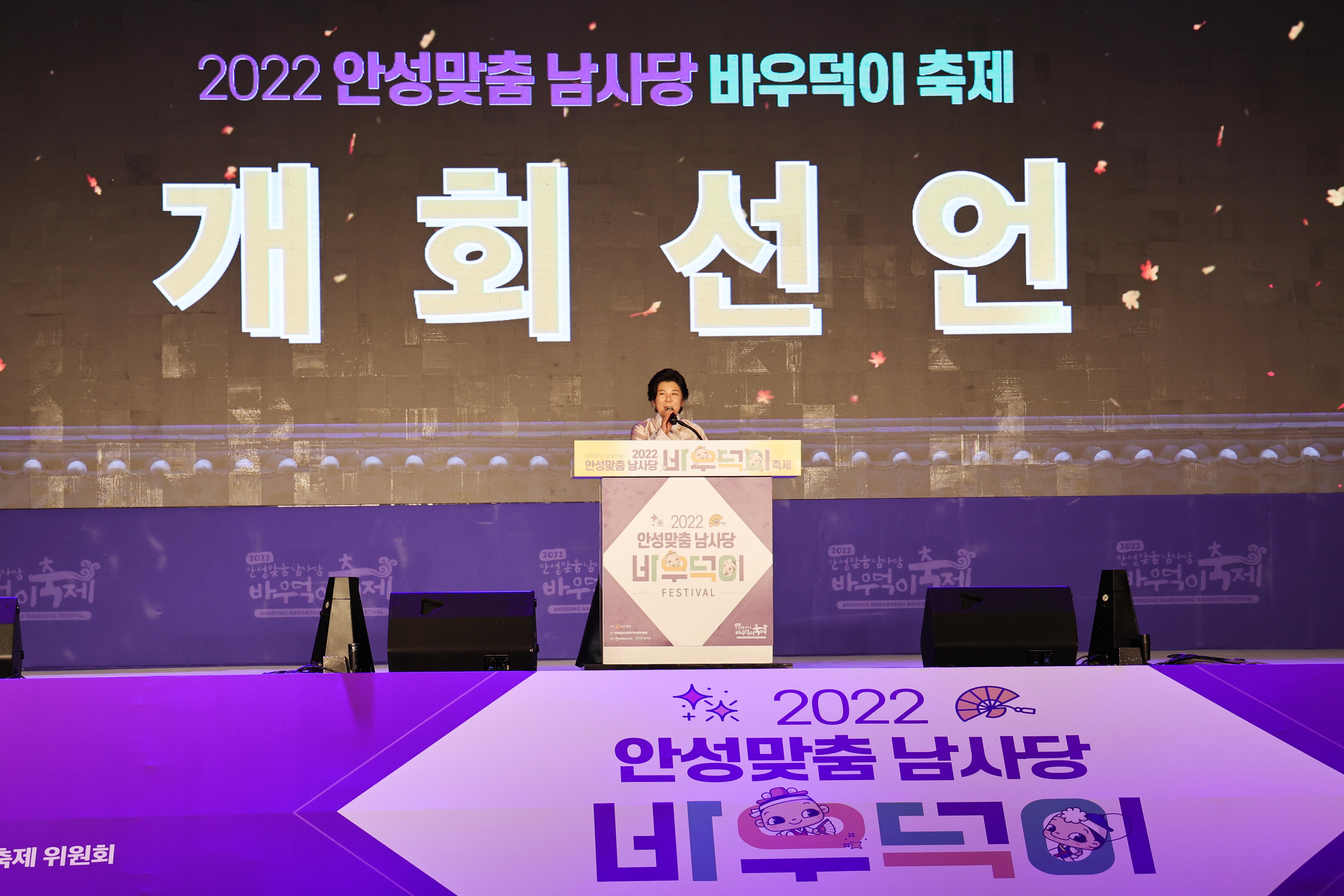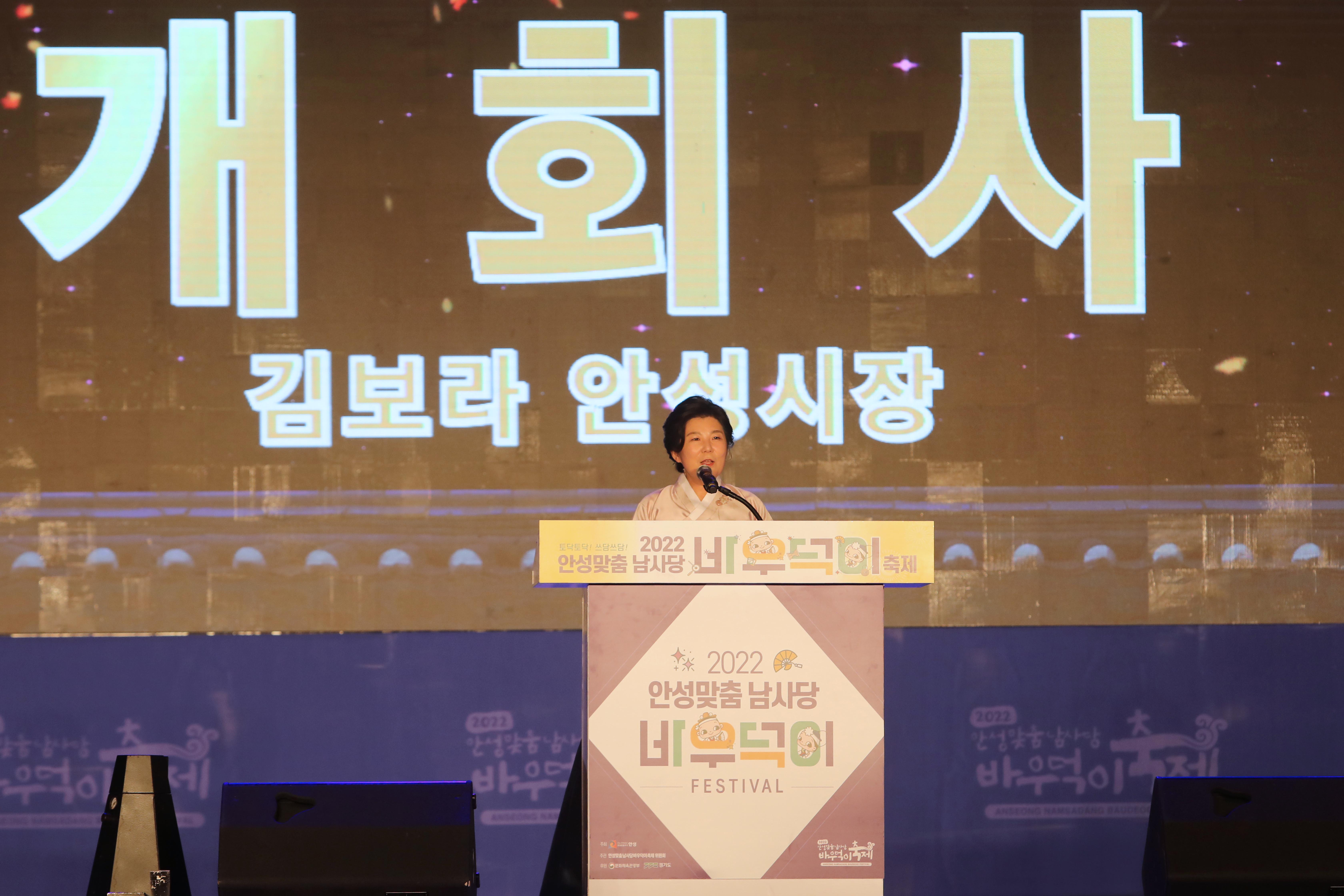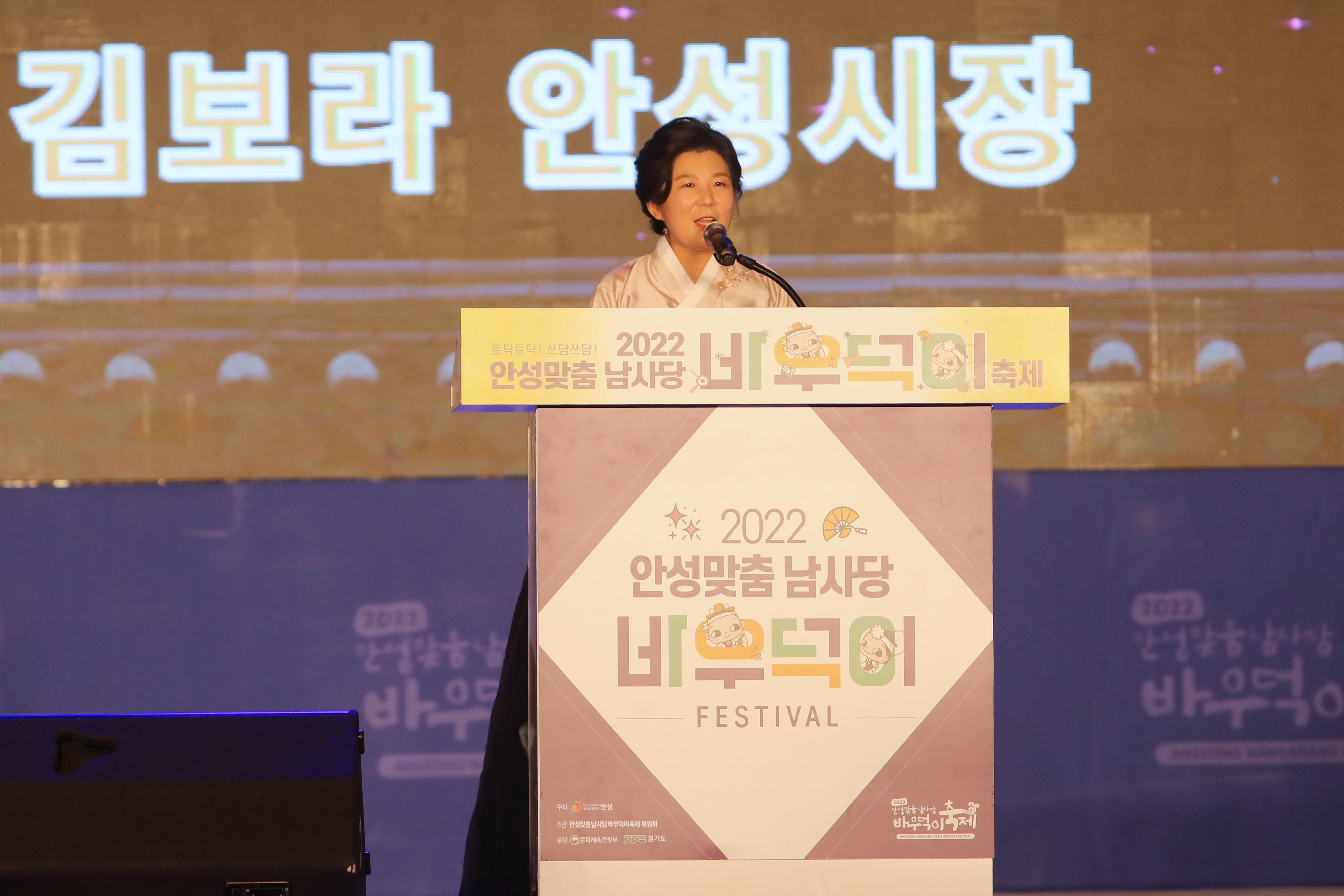 안성맞춤 남사당 바우덕이 축제위원장인 김보라 시장은 개막식 공연 시작 전 축사에서 “안성 역사 속 면면히 이어져 내려온 안성맞춤의 장인정신을 가지고