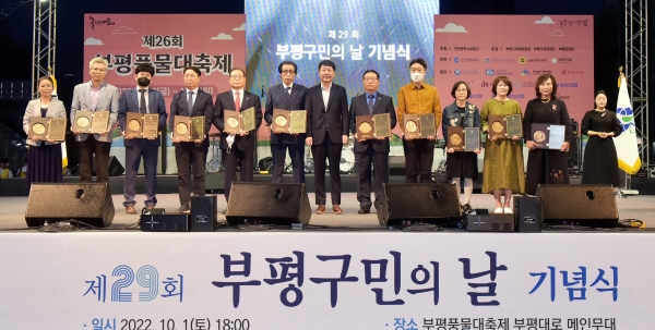 [금요저널] 부평구는 지난 1일 부평풍물대축제 거리축제 행사장에서 구민 화합을 위한 제29회 구민의 날 기념행사를 진행했다.