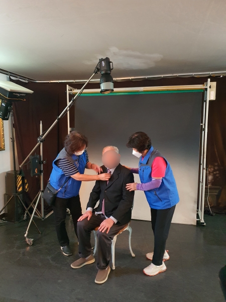 이날 협의체 위원들은 미용실에서 미용사와 함께 어르신 기초화장과 머리 손질을 도왔으며 촬영장에서는 경직되어있는 어르신들을 위해 밝고 유쾌한 분위기를 조성했다.