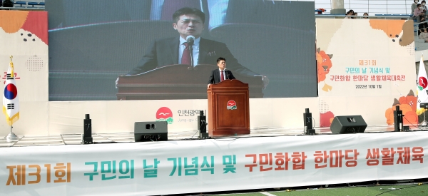 [금요저널] 인천 중구는 지난 1일 구민의 날을 맞아 기념식과 구민화합한마당 생활체육대축전 행사를 개최했다.