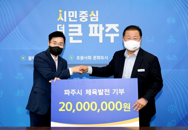 김경일 파주시장은 “코로나19로 어려운 시기에 파주시 체육발전을 위해 뜻깊은 기부에 감사드린다”며 “파주시 체육발전과 꿈나무 육성을 위해 공정하고 유용하게 쓰일 수 있도록 하겠다”고 말했다.