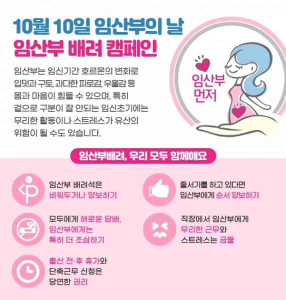 수원시 4개 구 보건소, 임산부의 날 기념해 28일까지 ‘임산부 배려 캠페인’