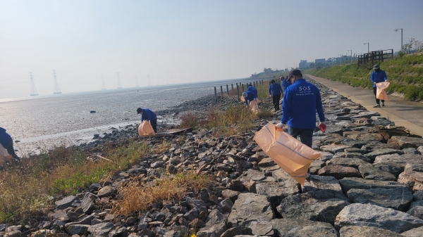 지난 달 30일 개최된 행사에서 참가자들은 지난 여름철 집중호우 때 내려온 수초 2톤을 수거하고 해양쓰레기 수거 모니터링도 함께 진행했다.