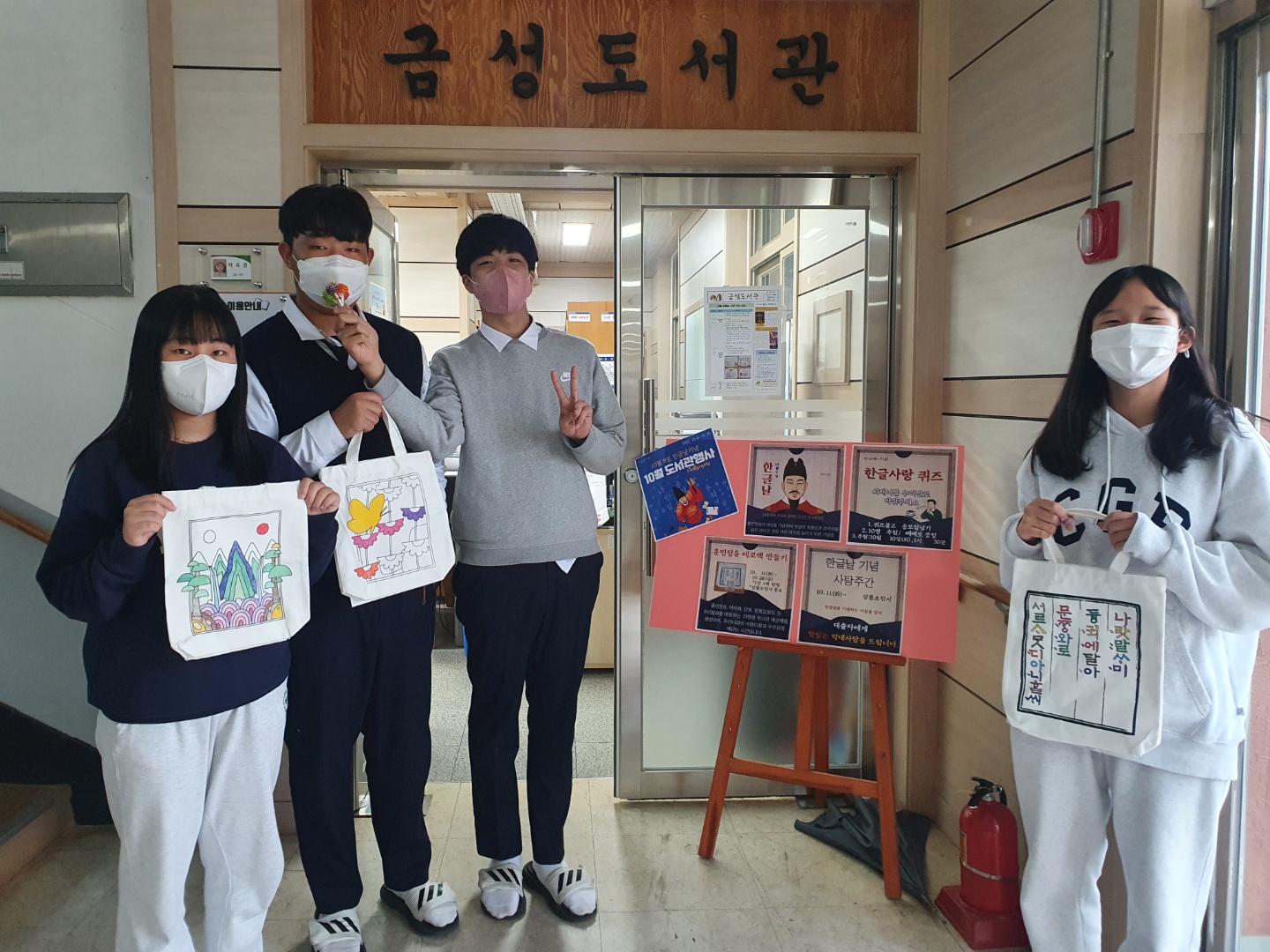 금성중‧고등학교(교장 권용직)는 10월 6일 전교생을 대상으로 한글날을 기념하고 도서관 이용 활성화를 위해 다양한 교내 독서행사를 실시하고 이달 말까지 행사를 진행하기로 하였다.