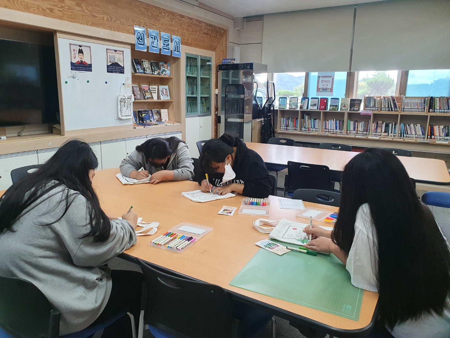 이 행사는 학생들이 우리 한글을 소중히 여기고, 우리 문화의 우수성을 깨달을 수 있도록 독서 행사와 연계하여 개최하였다. 먼저 낯선 외래어와 외국어, 어려운 한자말을 쉬운 우리말로 바꾸어보는‘한글사랑 퀴즈’를 운영, 추첨을 통해 선물을 제공하는 활동을 연계하여 학생들이 독서의 즐거움과 재미를 동시에 느낄 수 있는 기회를 제공하였다. 또‘훈민정음 에코백 만들기’를 통해 한글의 우수성과 세종대왕의 업적을 배우는 시간을 마련하여 도서관 방문을 활성화하고 전교생의 참여를 유도하였다.