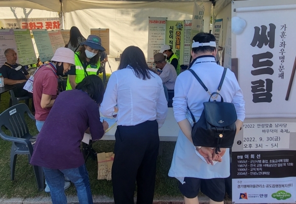 [금요저널] 안성시 공도읍 경기행복마을관리소에서는 지난 9월 30일 2022 안성맞춤 남사당 바우덕이 축제에 참여해 지역특색사업 중 하나인 ‘행복 써드림’ 행사를 진행했다.