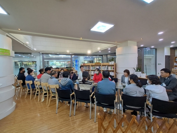 이날 시청 구내식당과 북카페에서 진행된 간담회는 힘든 근무여건 속에서도 깨끗한 청사를 위해 최선을 다하고 있는 환경미화원들을 격려하기 위해 마련됐다.
