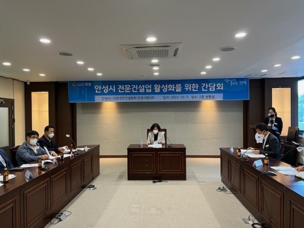 [금요저널] 안성시는 지난 5일 안성시청 회의실에서 대한전문건설협회 경기도회 안성시 운영위원회와 관내 전문건설업 발전을 위한 간담회를 개최했다.