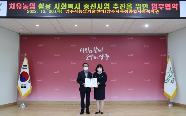 한편 양주시는 지난 3월 30일 전국 지자체에서는 처음으로 ‘정신건강복지센터와 농업기술센터 간 업무협약’을 비롯해 5월 26일에는 ‘치매안심센터와 농업기술센터 간 업무협약’을 체결한 바 있으며 이번 ‘종합사회복지관과 농업기술센터 간 업무협약”을 세 번째로 체결했다.
