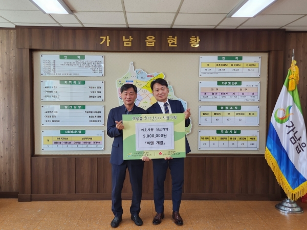 이복환 가남읍장은 “주변의 어려운 이웃에 대한 관심과 사랑으로 이웃돕기 활동에 동참해주신 이철 대표님에게 감사의 말씀을 드린다”며 “도움을 주신 성금은 복지 지원이 필요한 위기가구를 발굴해 취약계층을 위해 꼭 필요한 사업으로 소중하게 사용하겠다”고 전했다.
