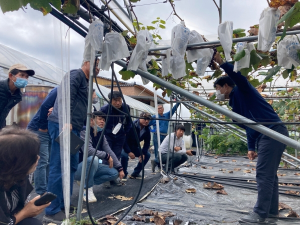 이번 현장교육은 품질 높은 포도 생산을 위한 합리적 비료사용, 효과적인 광합성을 위한 적절한 물관리, 포도 생육환경 개선을 위한 과원 조성 방안 등을 중점으로 포도 주산지인 안산시에서 포도를 직접 재배하고 있는 포도 마이스터 강사와 안산시농업기술센터 김덕수 팀장을 초청해 총 4시간 교육으로 진행됐다.
