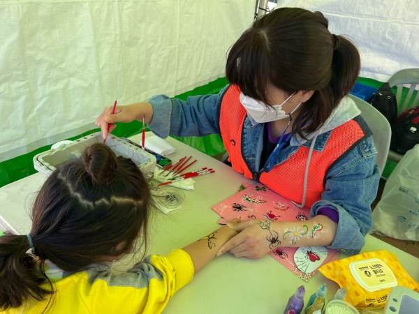 이번 행사는 자원봉사자 40명이 참여한 가운데 ‘향도·특색음식 발굴 경연대회’와 협업해 자원봉사센터 홍보와 그린상륙작전 캠페인를 비롯해 전래놀이, 페이스페인팅, 캘리그라피 등 다양한 체험부스를 운영했다.