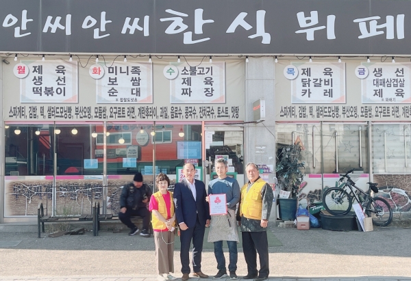 [금요저널] 인천 중구 영종1동 지역사회보장협의체는 지난 7일 어려운 이웃을 위해 정기후원을 약속한 안씨안씨한식뷔페를 방문해 착한가게 현판을 전달했다.