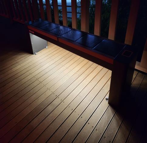 태양광 스마트벤치는 일조량이 많은 낮에 좌석의 태양광 패널을 통해 생산한 전력을 배터리에 저장해, 벤치 양끝 부분에 스마트폰 무선고속충전 기능을 제공하고 야간에는 벤치 하단에 LED 조명을 밝히는 친환경 시설물이다.