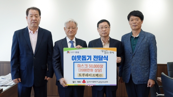 [금요저널] 안성시는 지난 13일 도부라이프텍이 이웃돕기 물품 마스크 5만장을 기부했다고 밝혔다.