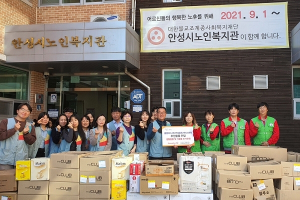 후원 물품 전달식에는 안성시노인복지관 김동선 관장을 비롯한 직원들과 홈플러스안성물류서비스센터 관계자들이 참석했다.