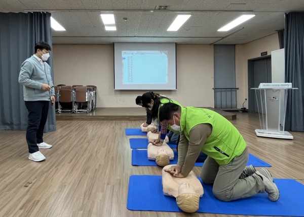 이번 교육은 응급상황 대처요령 및 심폐소생술 시행 방법 등 이론교육과 함께 실습을 병행했다.