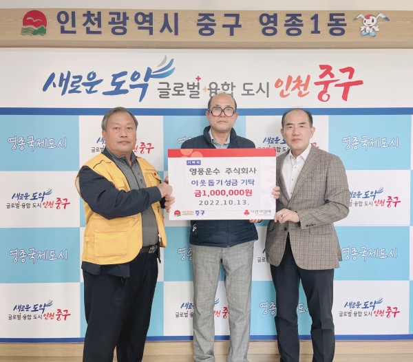 영풍운수주식회사에서 어려운 이웃을 위해 사용해 달라며 영종1동 지역사회보장협의체에 100만원을 지정 기탁했기 때문이다.