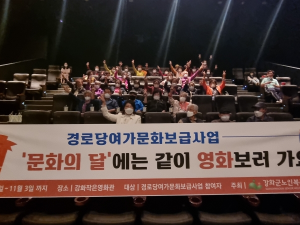 [금요저널] 강화군노인복지관은 ‘문화의 달’을 기념해 오는 11월까지 7회에 걸쳐 경로당 어르신들과 영화를 함께 관람한다고 밝혔다.