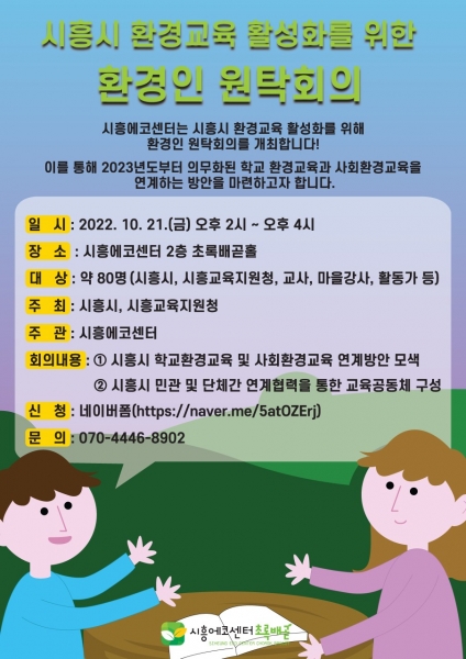 또한, 행사 전날인 21일에는 시흥시, 시흥교육지원청과 공동으로 ‘시흥시 환경교육 활성화를 위한 원탁회의’를 개최한다.