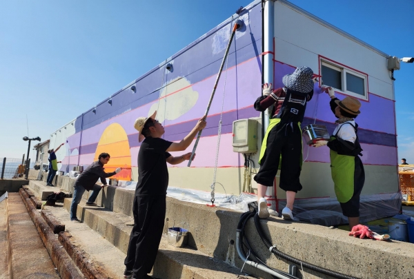 ‘오이도항 어촌뉴딜300사업’으로 개발한 오이도 브랜드를 활용해 외관을 디자인하고 오이도어촌계 소속 어업인 및 정왕3동 지역주민 20여명이 경관개선에 함께했다.