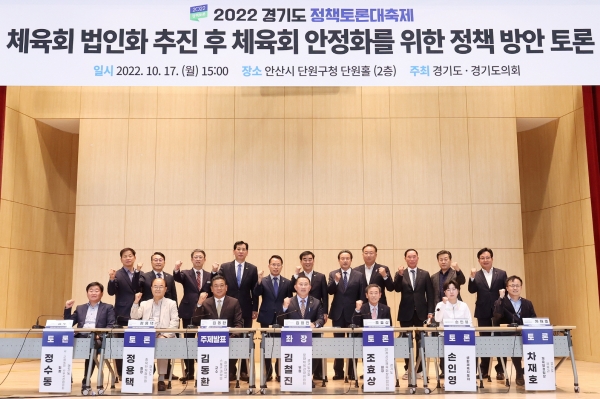 [금요저널] 경기도의회 문화체육관광위원회 김철진 위원이 좌장을 맡은 ‘체육회 법인화 추진 후 체육회 안정화를 위한 정책 방안 토론’이 지난 17일 안산시 단원구청 2층 단원홀에서 개최됐다.