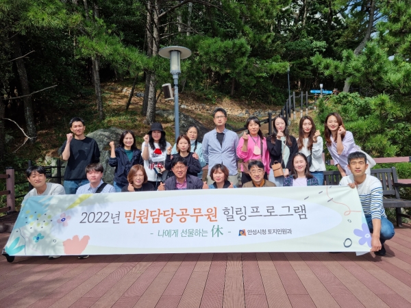 권순광 안성시 토지민원과장은 “업무에 지친 심신을 치유하고 에너지를 충전하는 기회가 되길 바라며 앞으로도 지속적으로 힐링프로그램을 운영해 민원담당 공무원들이 건강한 마음으로 시민들에게 더욱 친절한 민원서비스를 제공할 수 있도록 노력하겠다”고 말했다.