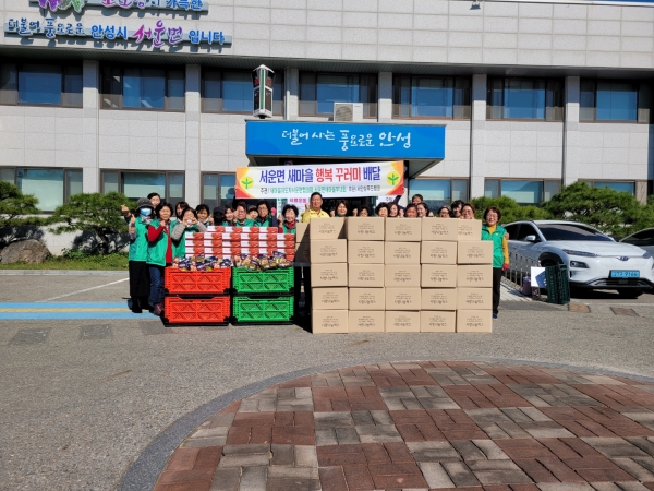 이번 행사에서는 서안성푸드뱅크에서 지원받은 식료품과 생필품으로 ‘행복 꾸러미’를 만들어 각 마을 어르신 및 어려운 이웃 100여 가구에 마을별 부녀회원들이 직접 방문·전달했다.